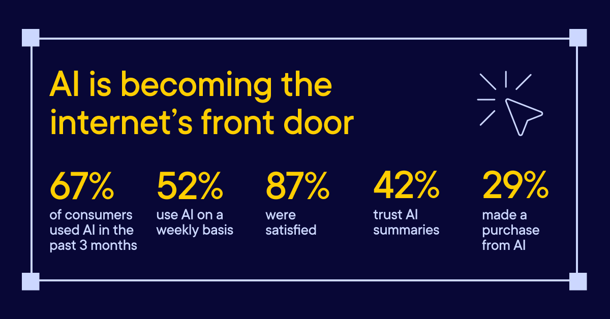 - 42% of consumers say they'd likely trust an AI-generated summary without ever visiting a brand's website.