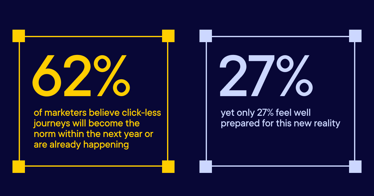 62% of marketers believe click-less journeys will become the norm within the next year or are already happening, yet only 27% feel well prepared for this new reality. That's more than a 30-point gap between urgency and execution.