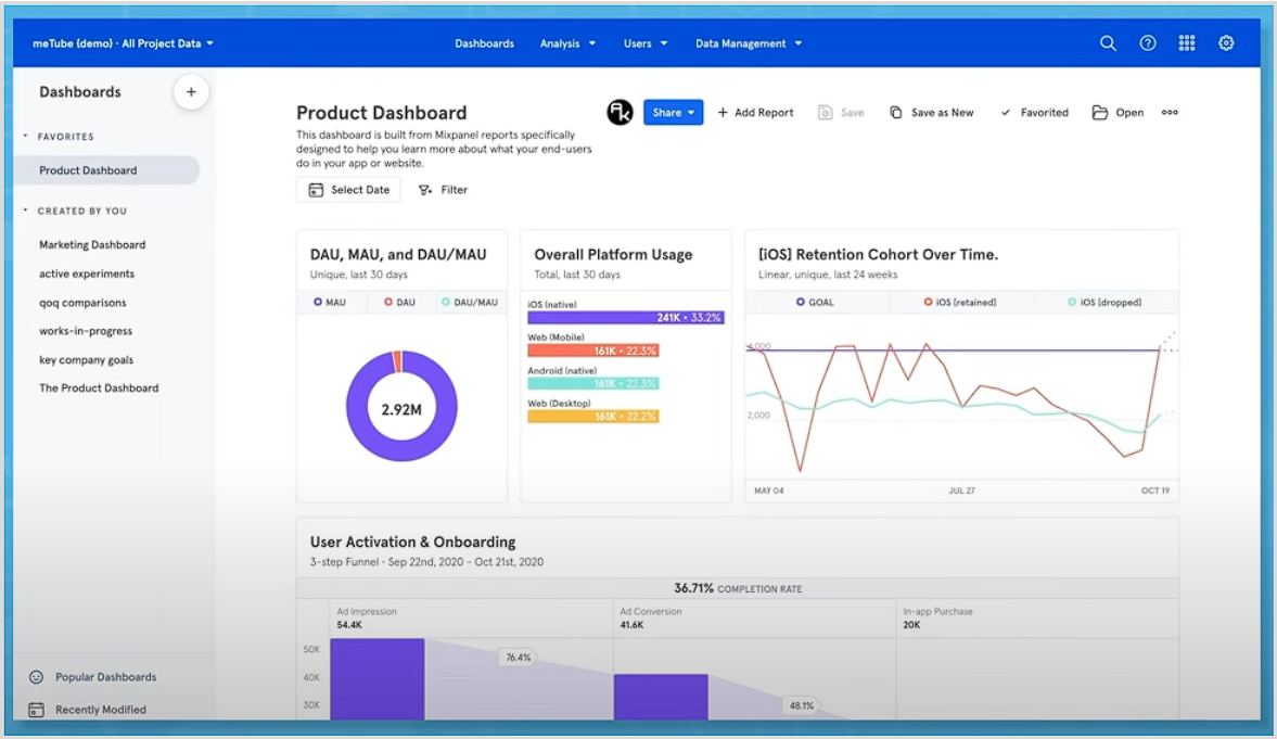 - Offers the ability to analyze data and build reports from a host of custom attributes, accounting for more in-depth reports than Mixpanel.